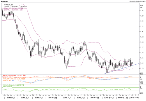 一月一度的非农数据在上周五公布,其中季调后非农新增31.2万,大幅超越市场预期的17.7万和前值。失业率录得3.9%,平均小时薪资月率0.4%,好于预期的0.3%。如此强劲的非农报告,简直就是美元多头的福音,美元指数自96.22上冲至96.52水平,随后鲍威尔发表讲话令美元掉头向下。欧元/美元走势稳定,日线图形成上升三角形,MACD双线向上,操作上建议介入分批介入多单,目标1.15,止损1.13。