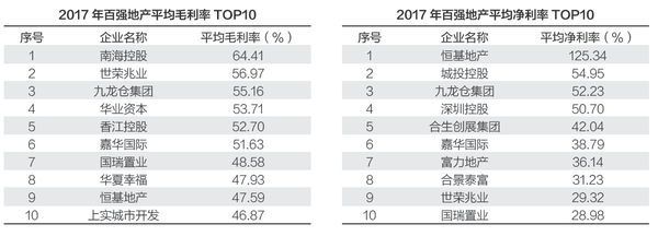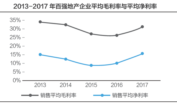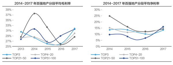 近年来,行业百强的平均毛利率和平均净利率逐渐回升,2017年平均毛利率近31%,平均净利率为15%,均为2013年以后的最高位。