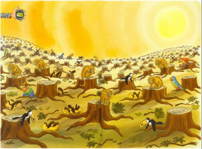 地球上已經有74棵樹被人類砍倒,20座網球場面積大小的森林消失。