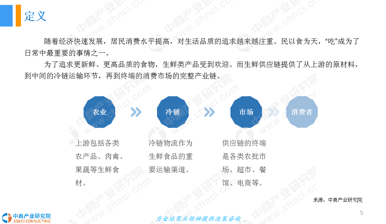 为了追求更新鲜、更高品质的食物,生鲜类产品受到欢迎。而生鲜供应链提供了从上游的原材料,到中间的冷链运输环节,再到终端的消费市场的完整产业链。