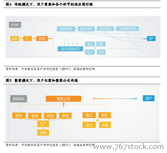 提前抢占和布局新流量入口。由于整装提供预算和时间可控的一次性解决方案,不少客户更愿意选择整装;未来整装有望成为行业主流。据腾讯家居发布的《2018 年家居家装行业人群洞察白皮书》显示,家居家装人群中有 42%的消费者需要全屋家具定制和整装服务。