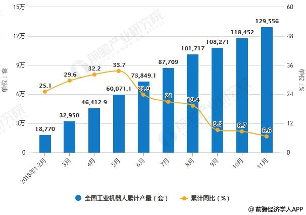 2018年1-11月全国工业机器人产量统计及增长情况