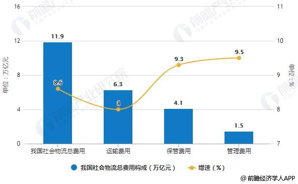 2018年1-11月我国社会物流总费用构成统计情况