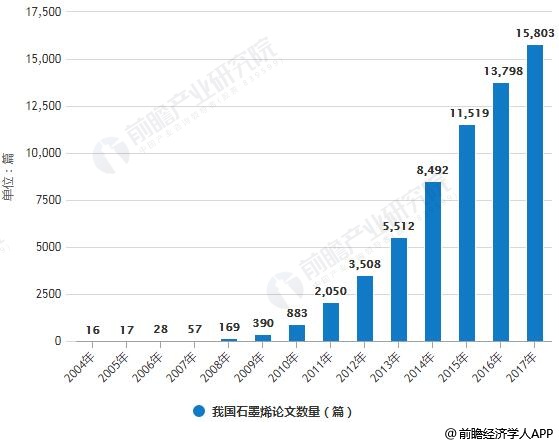 2004-2017年我国石墨烯专利申请及论文数量统计情况
