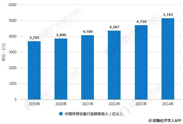 2019-2024年中国环保设备行业销售收入统计情况及预测