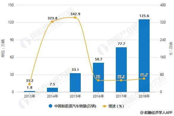 2013-2018年中国新能源汽车销量统计及增长情况