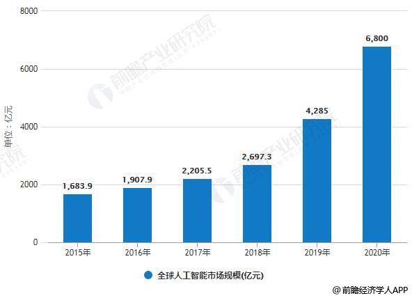 2015-2020年全球人工智能市场规模统计及增长情况预测