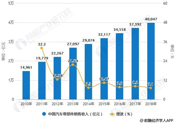 预计2018年中国汽车零部件销售收入将超4万亿