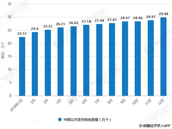 2018年1-12月中国公共类充电桩数量统计及增长情况