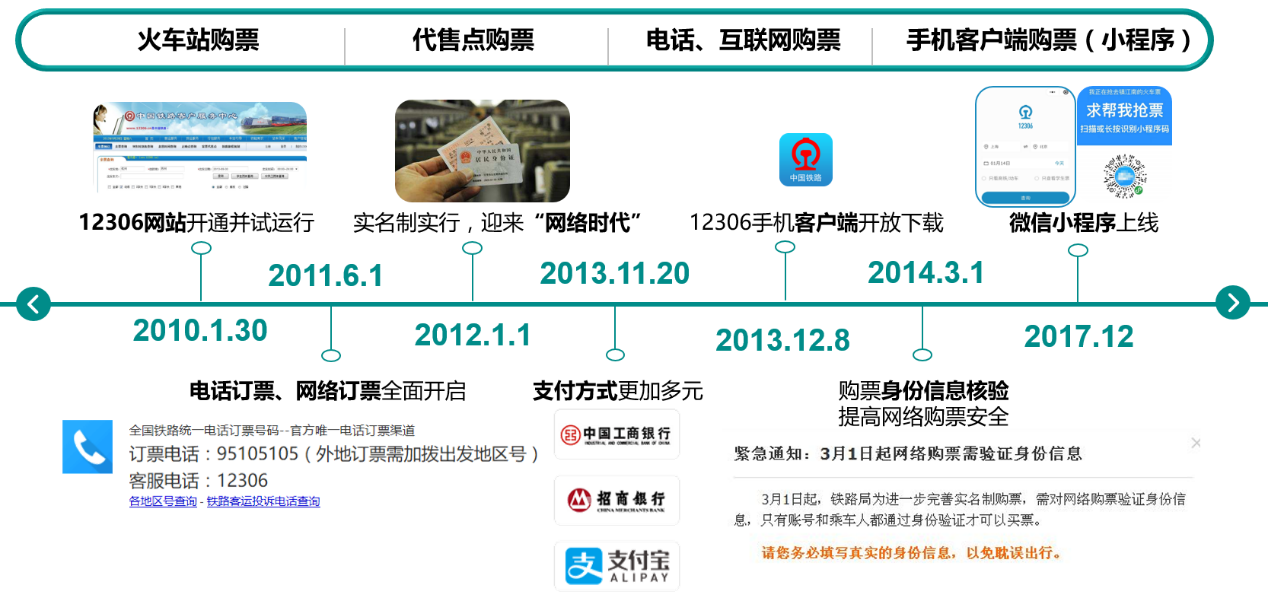 购票方式紧随互联网发展趋势,便利性和安全性不断提高。不用彻夜排队,不用忍受寒风烈日,抢票战场从火车站转移至互联网,如今抢票小程序和客户端盛行,极大简化了购票流程的同时,也带来了多样化选择。