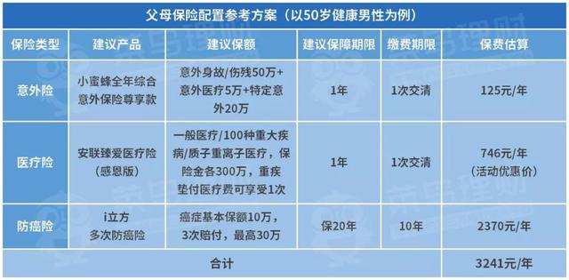 父母的保险配置,主要就是意外险、医疗险和防癌险:
