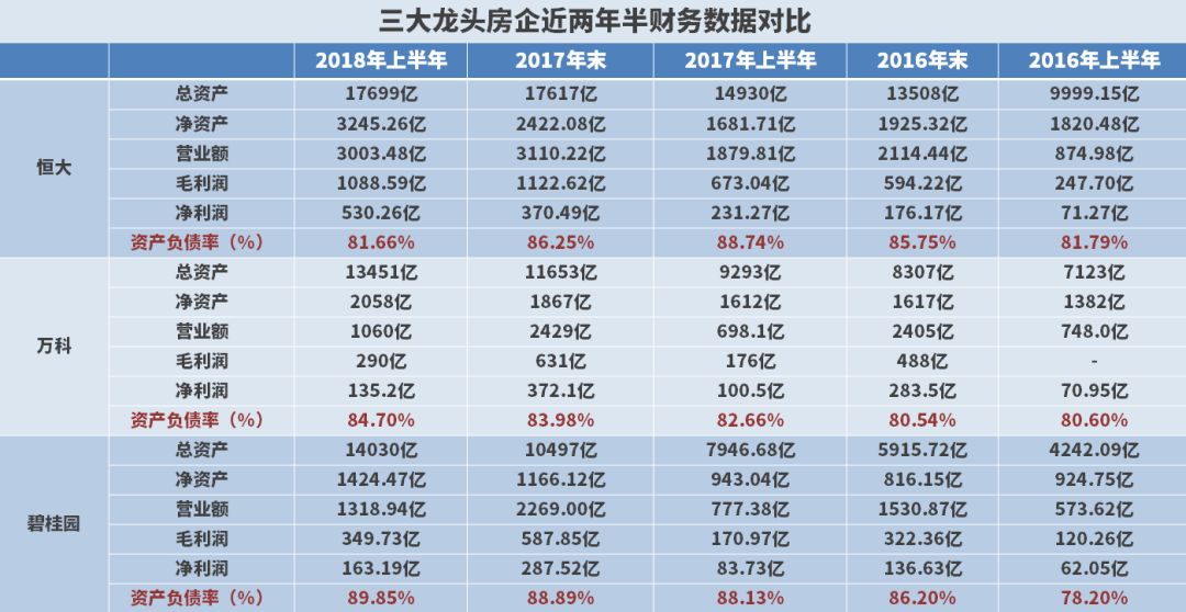 同一时期,万科的负债率在80.6%和84.7%之间,恒大则从2017年的88.74%降至81.66%,处于相对安全的范围。即便碧桂园的销售额超过恒大,但其利润水平始终与恒大相距甚远。