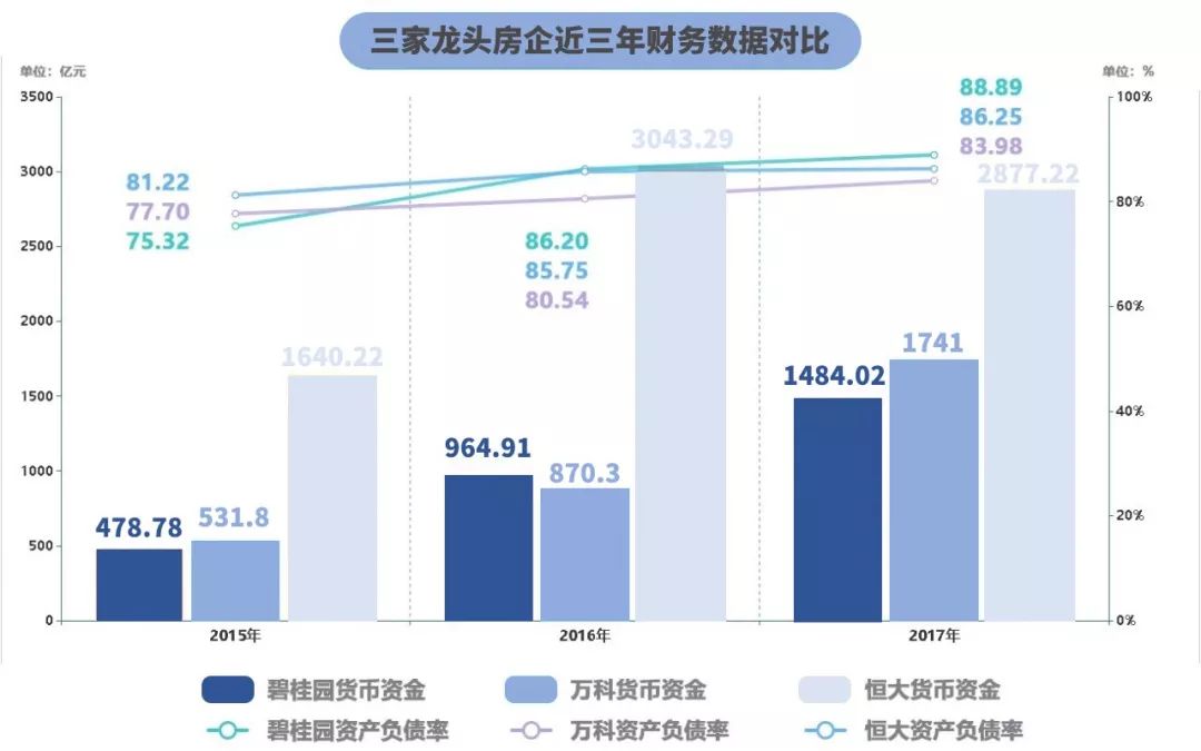 要知道,2015年碧桂园货币资金仅478.78亿元,万科和恒大则分别有531.8亿元和1640.22亿元。3年时间,手里可动用的资金增长超3倍,销售额接连夺冠,稳坐行业前3把交椅。