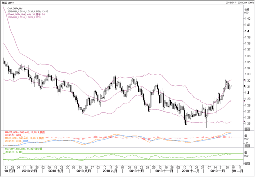英国当地时间1月30日的脱欧B计划投票结果依然不理想,7项提案中仅有保守党的两项议案得到投票通过,关于主张二次公投、不脱欧、推迟脱欧期限的五项修正案提案均被否决。英国议会的投票表决似乎给脱欧路径传达了一个"定向"的信号:修改当前版本的协议,并在两个月之内实现有协议脱欧,从当前情形看这有些"一厢情愿"了。"脱欧"前景的依旧扑朔迷离,制约着英镑的表现。由于推迟脱欧议案被否决,这令英镑的走势前景颇为难以判断。若从技术图形上看,日线图上英镑出现明显的触顶回撤的迹象,MACD红色动能柱开始收敛,如果汇价跌穿1.30则回撤的幅度和力度都会加大。目前看汇价上升的基础因素不足,也难以打破前高1.32作进一步的上升,更偏向1.32之下空英镑,寄望该货币对将在高位震荡整理。