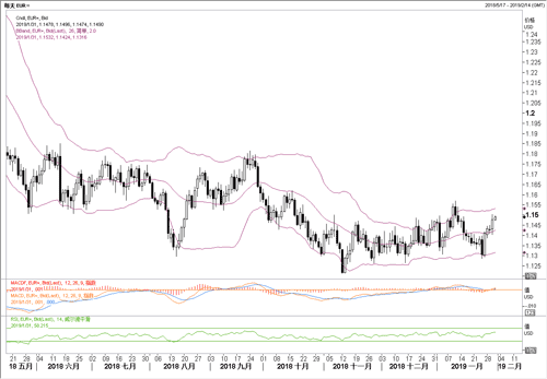 周四北京时间凌晨在1月份的议息会议上美联储维持联邦基金利率在2.25%-2.50%不变,符合预期。美联储利率决议声明称,撤销进一步加息的指引;承诺在未来行动上保持耐心;准备好调整资产负债表的正常化。美联储声明主要措辞变化:取消了进一步渐进加息的措辞;删除了对风险平衡的明确说法;经济活动的措辞从"强劲"调整成了"稳固"。美联储主席鲍威尔在随后的新闻发布会上表示,在一定程度上,美联储(未来)加息的可能性降温,下一步行动将完全取决于数据。此次会议的议息决定以及会后的声明措辞,已然看出美联储在今后加息态度上软化了下来,未来加息的不确定性在升高。议息会议后,美元指数开始出现跳水,欧元兑美元几乎触及1.15。欧元兑美元突破100日均线1.1444,目前挑战200日均线1.1565。汇价延续自 2016-2019年上行趋势线1.1289以来的上行趋势线,若受阻高位将反弹至200日均线1.1565和10月中旬高点1.1623,长期目标指向55周均线1.1759。操作上若获利回调企于1.1440之上,则继续多头欧元。