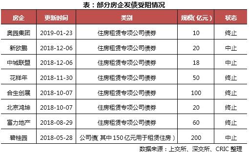 2018年在政策的推动下,房企专项债券的申请迎来窗口期,多家企业专项债券的发行也为企业补充了运营资金,然而进入下半年,情况急转直下,房企和地产基金主导的住房租赁专项债屡屡遭监管层中止或终止,如富力地产拟发行的60亿元私募专项公司债于2018年8月被终止,更有合生创展100亿元专项债券也被终止。这其中原因,包括了今年以来,包括杭州(楼盘)鼎家公寓、上海寓见公寓、北京昊园恒业、北京爱佳心仪等在内的多家长租公寓出现爆雷或跑路现象,引发监管关注。另外,在房企整体融资困难的背景下,有部分房企意图发行此类债权,挪用资金开发业务输血,也引起监管层警惕。