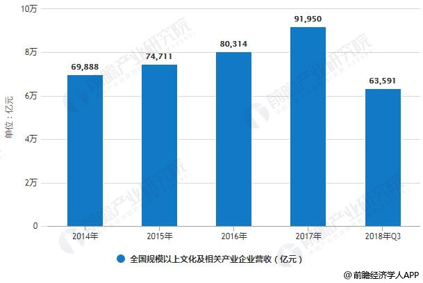 2014-2018年Q3全国规模以上文化及相关产业企业营收统计情况