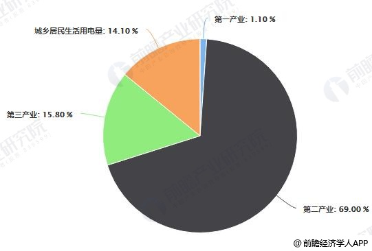 2018年全社会用电量68449亿千瓦时,同比增长8.5%。分产业看,第一产业用电量728亿千瓦时、同比增长9.8%;第二产业用电量47235亿千瓦时、同比增长7.2%,其中工业用电量46456亿千瓦时、同比增长7.1%,;第三产业用电量10801亿千瓦时、同比增长12.7%;城乡居民生活用电量9685亿千瓦时、同比增长10.4%。