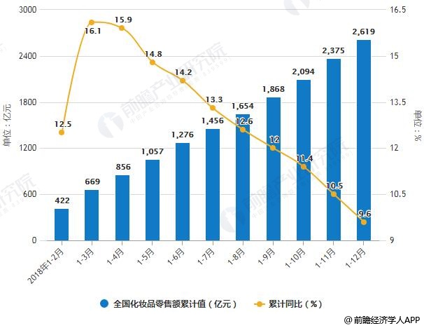 2018年全年我国化妆品市场零售额超2600亿