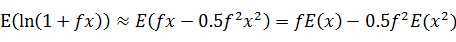 E(R)=E[(lnP)/M]=E[ln(1+fx)]