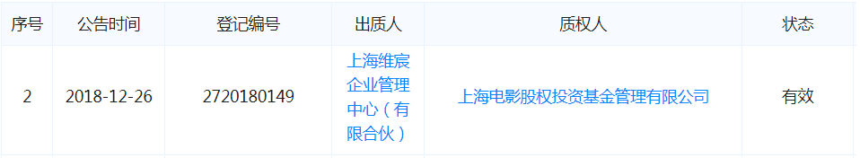 此外,晨韵实业的控股股东为上海维宸企业管理中心,而上海维宸又将其持有的部分股权出质给了上海电影股权投资基金管理有限公司。