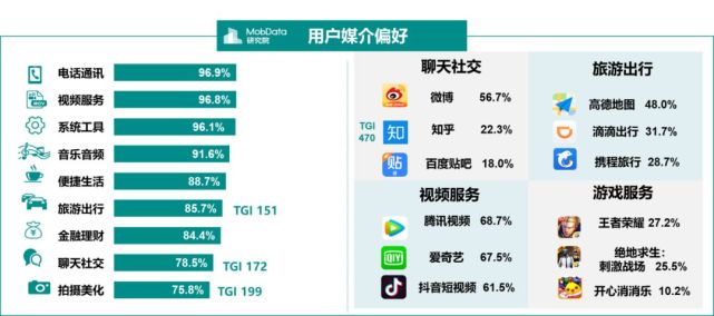 跨境电商用户偏爱旅游出行、聊天社交和拍摄美化等相关触媒。