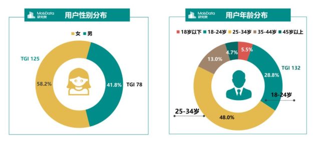 小红书用户以24岁以下年轻女性为主,网易考拉年龄层偏大,与此同时,虽两者皆以女性用户为主,但网易考拉的男性比例明显高于小红书,占比接近三成。