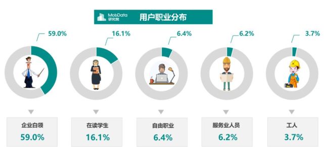 职业分布来看,主要聚焦在企业白领与在读学生两大群体,占比分别达到59.0%与16.1%。