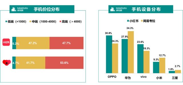 网易考拉用户高端机居多,其中以华为机比例占比较高。