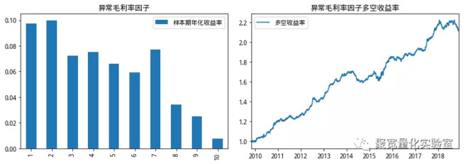 多空组合表现较为稳定,年化收益率约为9.89%,最大回撤只有5.85%,夏普比率为1.071。