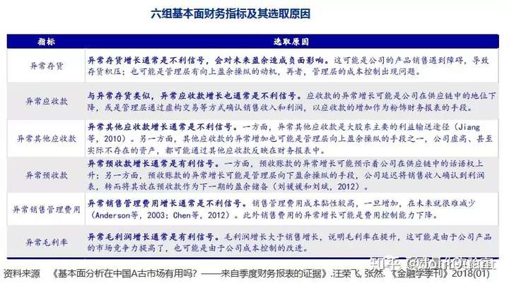首先我们列出6个异常财务指标的选取原因: