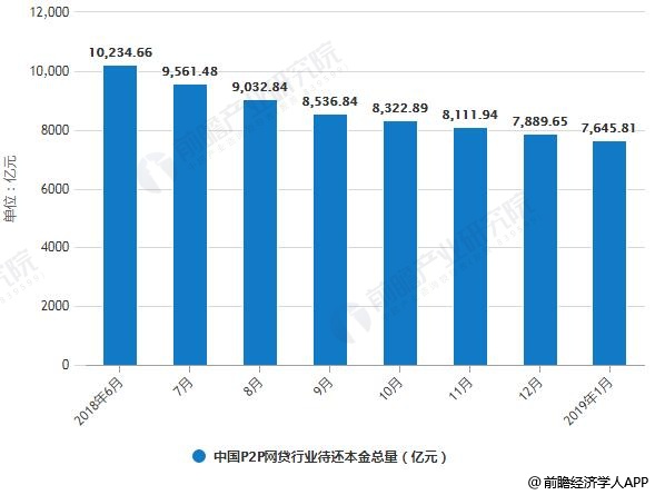 2018-2019年1月中国P2P网贷行业待还本金总量统计情况