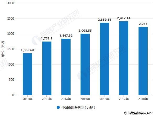 2018年12月,狭义乘用车(轿车+SUV+MPV)零售销量达221.7万辆,同比下降19.2%,环比增长9.8%;2018年全年累计销量达2235万辆,同比下降5.8%。2018年全年狭义乘用车产量2309万辆,同比增速下降5%。