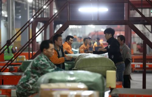 2014年11月12日,杭州萧山区某快递分拨中心,准备把“双十一”囤积起来的货物发往全国各地 / 视觉中国