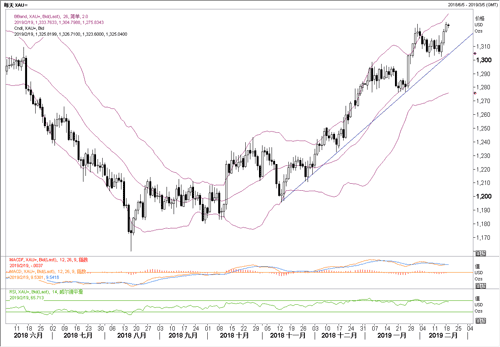 技术图上,只要确立比之前1月底1326.3美元更高的高位才能确认上涨趋势的延续,但昨日的轻微上破并不算有效破位。1月初、1月底和现在的三个高点对应的日线MACD和RSI都出现顶背离,黄金有回调的风险。较为保险的是当黄金回调至上涨趋势线和日线布林带中轨重合的1305美元逢低做多,跌破1300美元后止损。