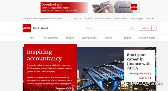 1、在ACCA官网主页www.accaglobal.com 点击 MY ACCA,进入登陆页面: