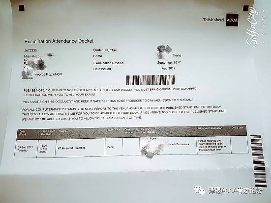 2.按照规定ACCA准考证需双面打印,在一张A4纸上面。