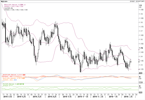 周四(2月21日)亚市早盘,欧元/美元位于1.1345附近水平徘徊。上一交易日汇价走势震荡,先涨至1.1372高点,之后自该点大幅回撤,当日基本收于十字星。周四凌晨03:00公布的美联储(FED)会议纪要显示,委员们在3周前的会议上讨论了在2019年底前结束削减资产负债表上债券的计划。美联储会议纪要强调,在货币政策方面需要保持耐心,上月暂停升息不会构成风险,反而会带来很多好处。与此同时,美联储官员认为经济将持续扩张,就业市场强劲,通胀接近目标。会议纪要出炉后,美元指数短线加速上涨约25点,当日由跌转涨。尽管会议纪要似乎对于美元有利,但刺激的作用并不大,欧元仅从高位小福回落,然而依然企稳近期的高位水平。因此,暂时对于欧元的继续反弹可期,上方目标先看向1.1400。