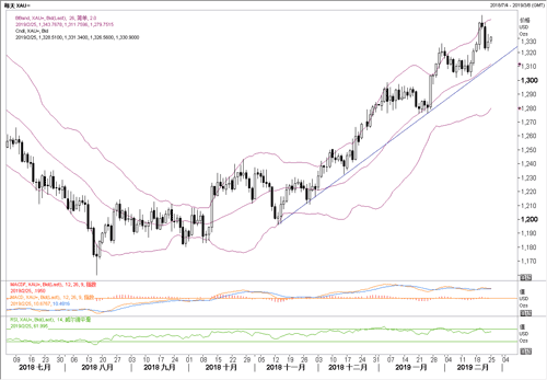 周初受到中美贸易谈判乐观情绪影响,黄金上破多个关口,周中美联储会议纪要公布较预期鹰派使黄金出现了获利回吐,周四下跌了14.74美元。美国的会议纪要对于今年缩表的结束预期较为一致,但对于是否再度加息问题上分歧较大,所以对于市场认为的不加息甚至降息的预期是一种打击,但缩表结束也令美元承压,美元反弹幅度有限,全周还是收跌,黄金主要是受到获利回吐盘的影响。