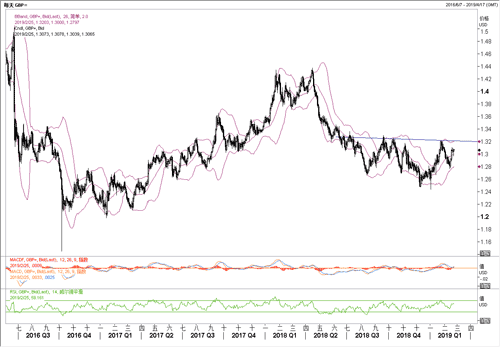 上周,欧元/美元在经过此前连续2周的下跌后首次反弹以阳线小幅收涨于1.1333,但整体陷入相当窄幅的波动格局,上周最高触及1.1372,最低触及1.1273。上周四出炉的欧洲央行(ECB)会议纪要指出,欧元区经济发生衰退的可能性低,不确定性大。欧元区经济增速可能会在几个季度内低于潜在增速,近期经济增长势头可能弱于此前预期。尽管当前欧元去的经济以及通胀发展状况不尽人意,且美国开始在贸易上对欧洲施压,但从上周欧元的走势情况看,欧元也并受到太大的打击,依然是处于区间性的窄幅徘徊状态。上行方面,欧元/美元初步阻力位于1.1400一线,若突破则将打开进一步上涨的大门,目标指向1.1450水平。与此同时,周线图上看,相对强弱指标(RSI)走高,指示欧元/美元面临继续上涨的空间。而下行方面,欧元/美元初步支撑位于1.1300一线,若跌破则目标下看1.1250水平,继续跌破则目标指向1.1200关口,若该水位也被跌破,则将为进一步跌向1.1150敞开大门。