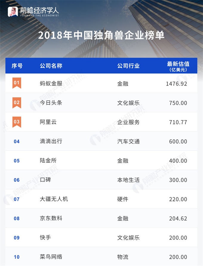 [咨询文摘] 【独家发布】前瞻产业研究院:2018年中国独角兽企业背后行业分布与企业成长趋势报告 |