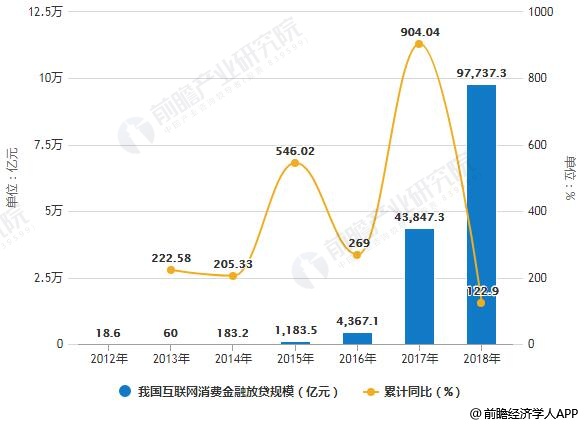 2012-2018年我国互联网消费金融放贷规模统计及增长情况预测