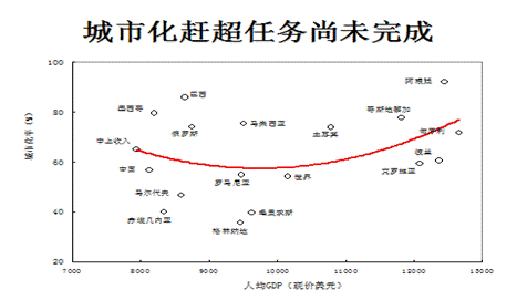 中国的城市化速度在这40年里也是世界上速度最快的。我查了一下数据,横向比较起来,160多个国家里大概有四、五个国家比中国速度快,但是这些国家都非常不典型,而且大都是最不发达的国家。它的城镇化是什么样大家可以想象,有很多居民只是住在城市的贫民窟里,根本就没有沐浴到所谓的“城市之光”。