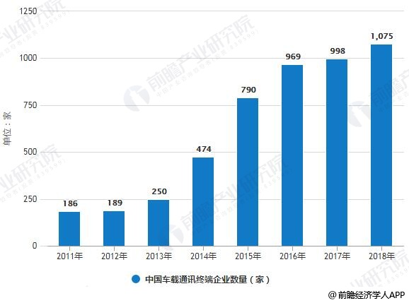 根据企查查平台信息,经营范围为车载通讯设备的企业稳定增长,2018年已超过1000家。