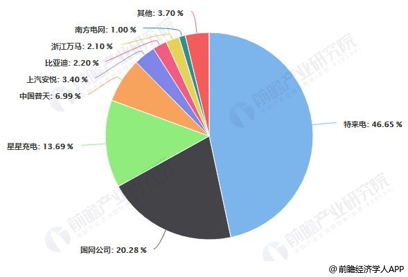 从我国中游充电运营商拥有的充电桩数量占比结构情况来看,目前我国中游充电桩运营集中度高,特来电一家就占据了46.7%的市场份额,排在第二的则是国家电网,占比为20.3%,而第三名是星星充电,占比13.7%。