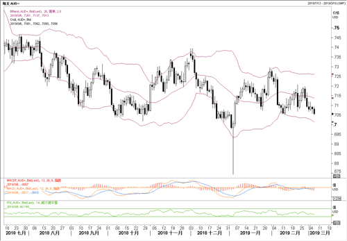 澳元/美元延续下跌,跌至0.7058,但收盘前收复日跌幅,维持在0.7100水平紧下方。尽管美国经济数据好于预期,澳元/美元跌至上述低位,但收盘美元上涨动能减弱。澳储行周二利率决议上澳储行官员决定维持利率不变,符合市场预期,但澳储行此前决定将二季度GDP预期下调至2.4%。市场预期2季度GDP为2.5%,此前预期为2.8%,则无疑抑制了澳元的表现。4小时图显示,澳元兑美元目前有望突破看跌的20移动均线,维持看跌斜率,处在长期均线下方,技术指标仍处在消极区域,方向仍不明朗。若澳大利亚GDP数据好于预期,澳元/美元将突破0.7100,澳元/美元或将短暂上行,但由于中国下调经济增长预期,澳元/美元维持上涨的动能可能有限。操作上仍偏向0.70之上布局多头澳元,剥去短线的超跌反弹,止损控制在0.6980之下。