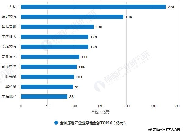 2019年1-2月全国房地产企业拿地金额TOP10统计情况