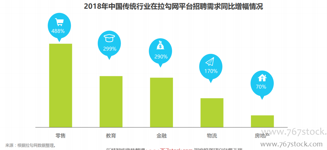 人工智能引发产业结构变革,拉大相关岗位人才缺口。根据拉勾网平台数据显示,2018年10个月内,人工智能人才增速要明显低于其岗位需求的增速,这意味着人工智能类人才依然稀缺,主要以AI人才、资深产品/研发类人才为主。同时,人工智能也在逐步被应用到各个领域,应用边界不断扩大,并逐步的重塑所在领域的产业链和价值分配方式。预计未来一年,技术岗位仍将是最为紧缺的职位类型,随着新技术、新行业的不断涌现,企业对于优质技术人才的渴求热度不减。