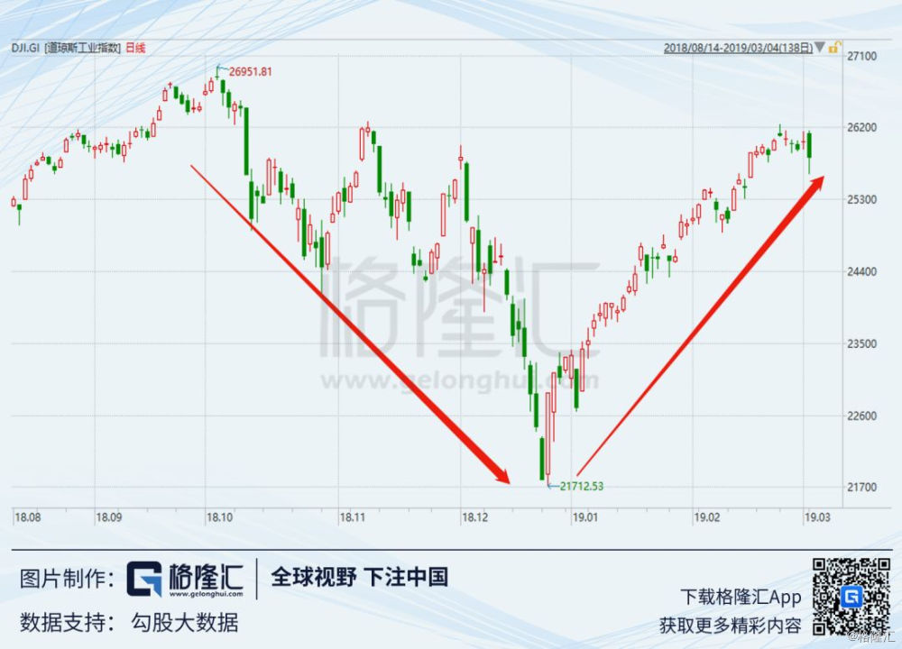 不仅A股如此,美股亦然。2018年圣诞前夕,美国三大指数创下10月高点以来的新低,纳指更狠,跌幅超过20%,进入了技术熊市。2019年1月3日,美指再次大跌。就在大家正要讨论美股是不是熊市来了的时候,1月4日,美股大涨,至今涨幅已经超过20%,又进入技术牛市。
