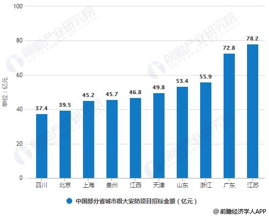 2018年中国部分省城市级大安防项目招标金额统计情况